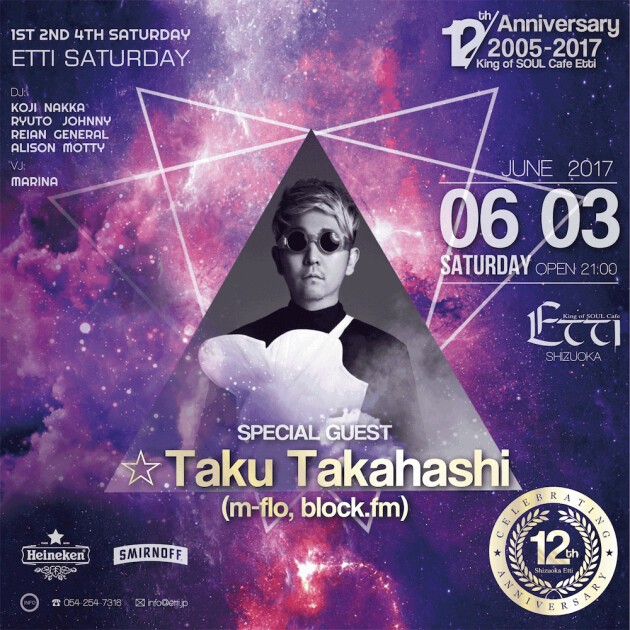 今回のイベントはEttiの12周年を記念して、スペシャルゲストのTaku Takahashiをお招きします!