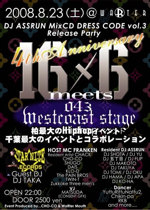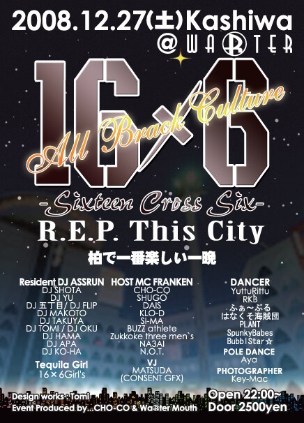 『CHO-CO』千葉、柏最大のHIPHOPパーティ『16X6』を主催。