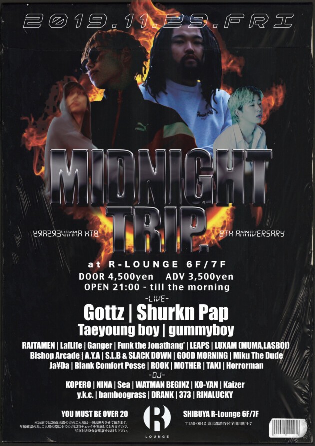 東京・クラブシーンを中心に各所で活動する次世代の駆け抜けるアーティストやクリエイター達がジャンルを越えて集い、音楽や人間で繋がる宇田川町発・現場直下型人間交差点的イベント“Midnight Trip.”の8周年アニバーサリーイベントが、今やメディアを賑わせ続ける豪華ラインナップで開催。