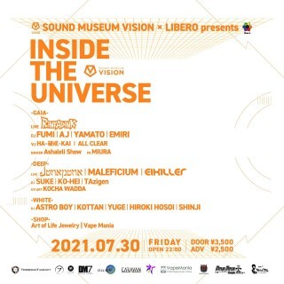 WHITEステージではPsy Tranceの世界観を熟知した実力を持つTechno、HouseのDJ陣から若手DJ達で素敵な一夜を演出します。