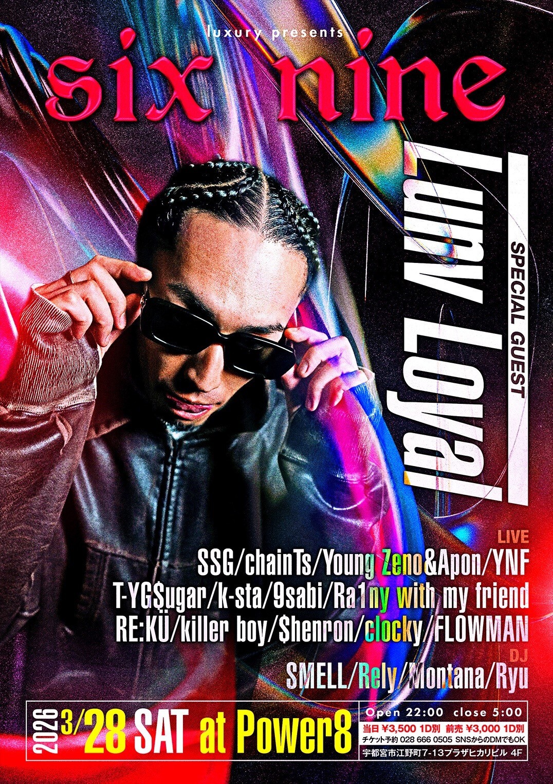03.28 (Sat)【six nine】▼GUEST LIVE, Lunv Loyal, ▼LIVE, SSG, chainTs, Young Zeno&Apon, YNF, T-YG$ugar, k-sta, 9sPOWER8 / Tochigi, Japan