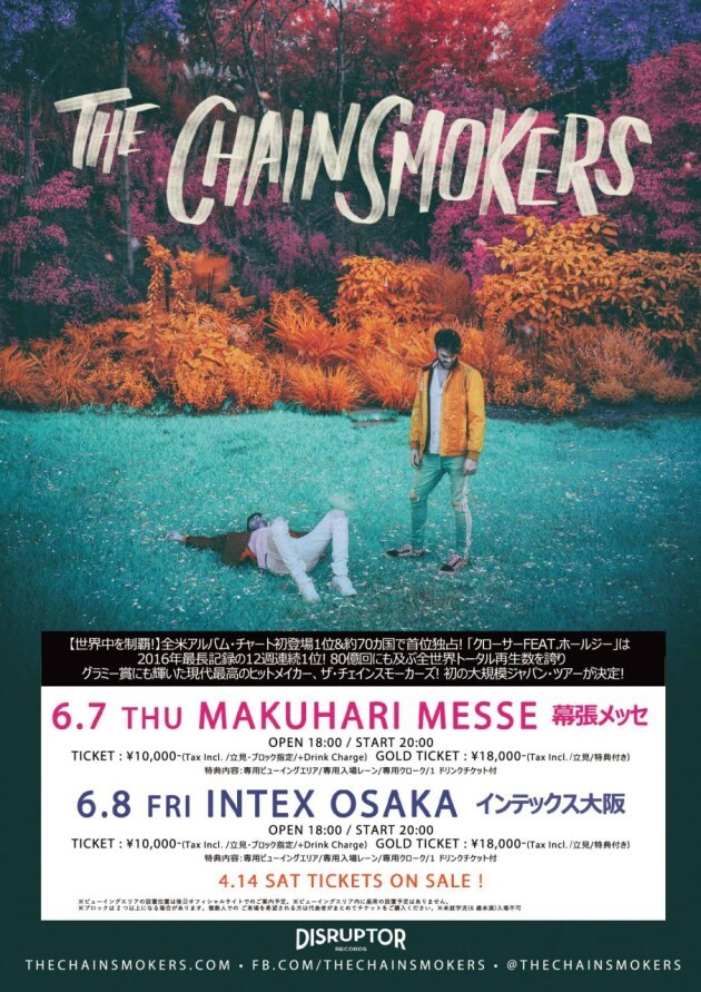 【iFLYERにてチケット大好評販売中!】The Chainsmokers(ザ・チェインスモーカーズ)、いよいよ6月7日に幕張メッセ、8日にインテックス大阪にて来日公演! チケットを今すぐGET!
