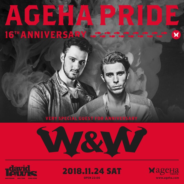 記念すべきスペシャルゲストは、2015年のNYE、2017年のGWと節目にageHaを沸かせるオランダの大人気デュオ"W&W"が来日!