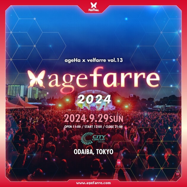 2006年に幕を閉じた伝説的スーパークラブ・velfarre(ヴェルファーレ)と、2022年に新木場での活動を終了した日本を代表するクラブブランド・ageHaがコラボする年に一度のモンスターパーティー"agefarre"(アゲファーレ)が、今年もお台場での野外フェスティバルとして開催!!