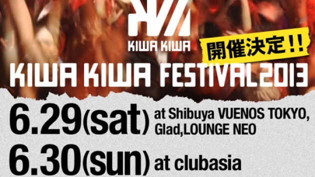 昨年渋谷clubasiaで12時間に渡り開催されたインディー・ミュージックの祭典KIWA KIWA Festivalが今年は2デイズに渡り開催決定!日程は2013年6月29日(土)、6月30日(日)の2日間。会場は6月29日(土)を渋谷VUENOS TOKYO、Glad、LOUNGE NEO の3会場連動、6月30日(日)は昨年同様、渋谷clubasiaとなる。