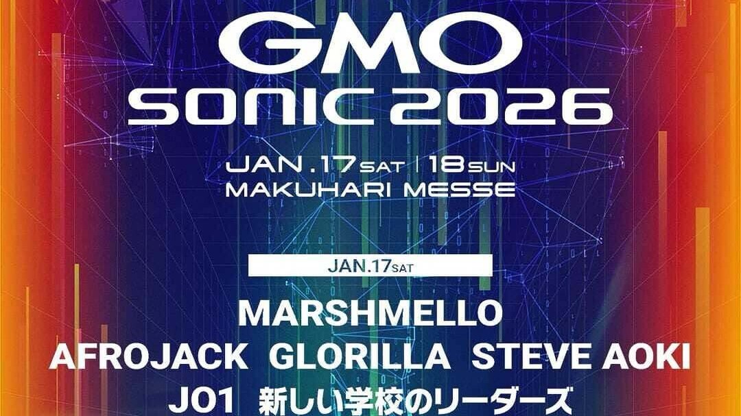 日本のダンスミュージックシーンの年明けを祝う、2026年1月17日(土)、18日(日)に開催される日本最大級のビッグフェス「GMO SONIC 2026」。ここ日本でも高い人気を誇る Marshmello(マシュメロ)や日本初登場となるダンスミュージックシーンの伝説的トリオ Swedish House Mafia(スウェディッシュ・ハウス・マフィア / SHM)、そして AFROJACK(アフロジャック)、STEVE AOKI(スティーヴ・アオキ)、Dom Dolla(ドム・ドラ)、三人揃ってのレアな来日公演を行う MEDUZA3、そしてスペシャルゲスト・アーティストには最近、自身のルーツであるトランスに返り咲きシーンからの喝采を浴びる TIЁSTO(ティエスト)と、世界最高峰のダンスミュージックアーティストたちが集結する同フェスには、ここ日本からも Coachella への出演で唯一無二の音楽性を世界にアピールした 新しい学校のリーダーズ、「GMO SONIC」の常連である大人気ボーイズグループ JO1 等の出演が既に発表されており、国内外の幅広いジャンルの音楽ファンたちの注目を集めている。