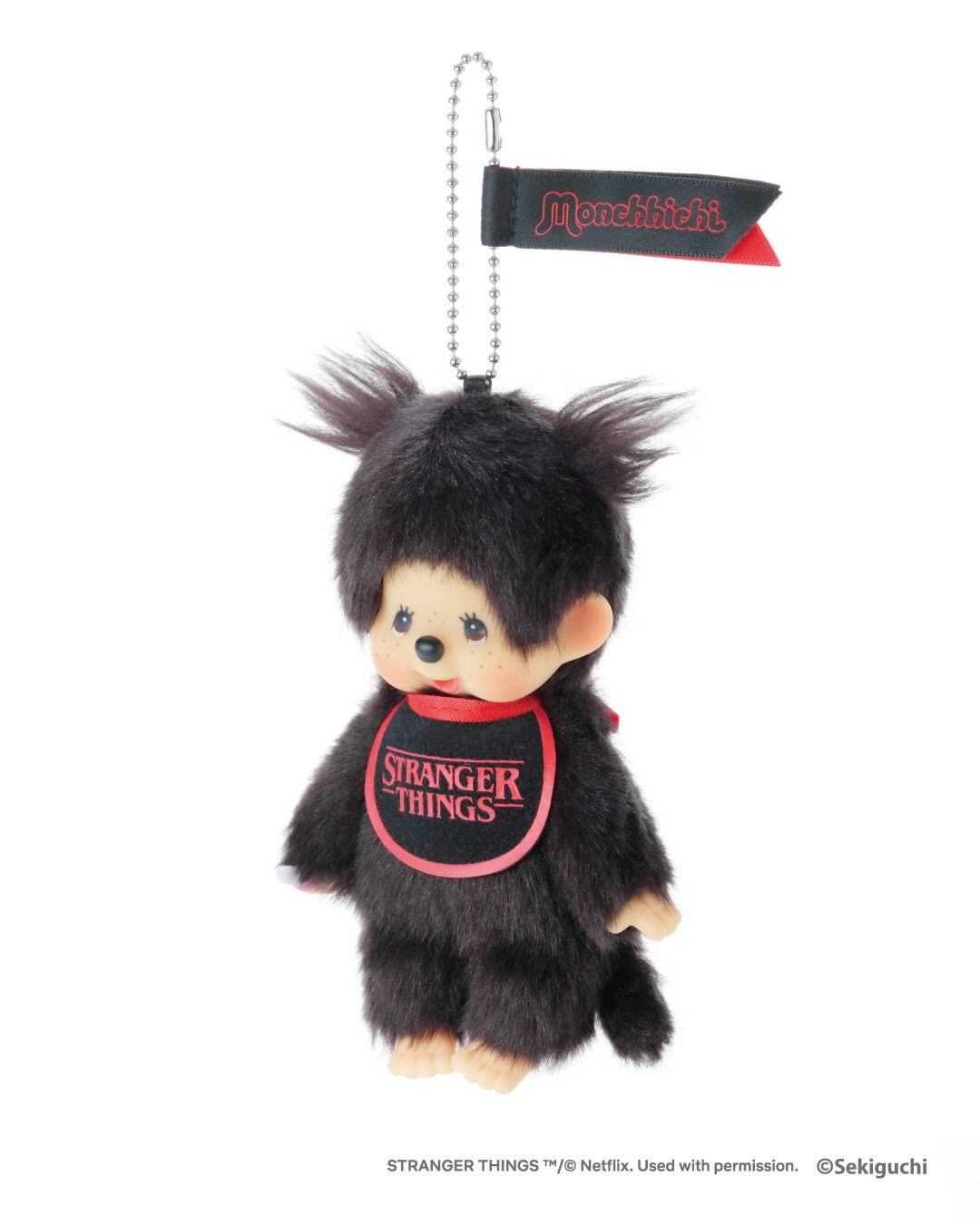 「Stranger Things」のロゴを引き立たせ、作品のダークでミステリアスな世界観を黒×赤のツートーンで表現しました。モンチッチの象徴であるスタイルックをベースに、シンプルながらも存在感のあるデザインに仕上げています。ツインテールを立たせるとまるでエルのようなパワーが(?)世界観のコントラストが際立つ、特別感あふれるアイテムです。