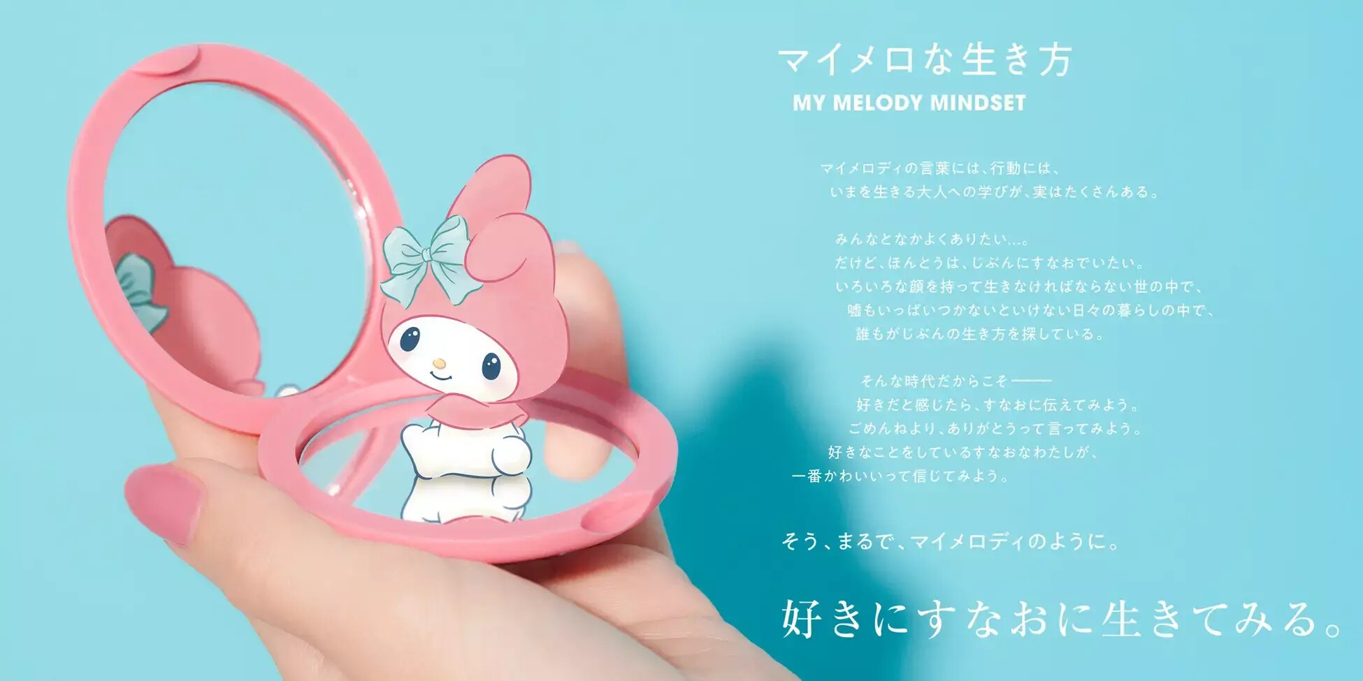 「マイメロな生き方」(MY MELODY MINDSET)とは、自分の気持ちにすなおでありながら、まわりの気持ちも大切にできるマイメロディのような生き方のことです。自分の“好き”にすなおである「すなおさ」、まわりに流されずに大切なことは守る「しなやかさ」、自分の気持ちも相手の気持ちもそのまま受け止める「やわらかさ」など、「マイメロな生き方」には、いまを生きる大人たちにそっと寄り添い背中を押してくれるようなヒントが散りばめられています。