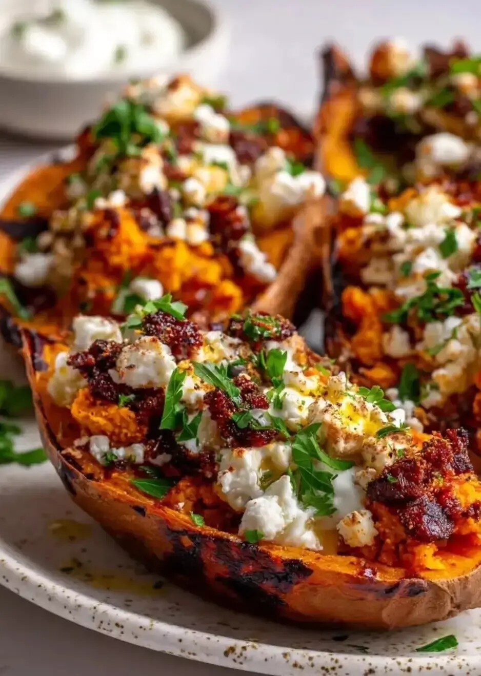 完熟のさつま芋に自家製チリとチーズ、ベーコンをトッピング。メープルシロップをかけて甘じょっぱさが最高においしい一品になりました。