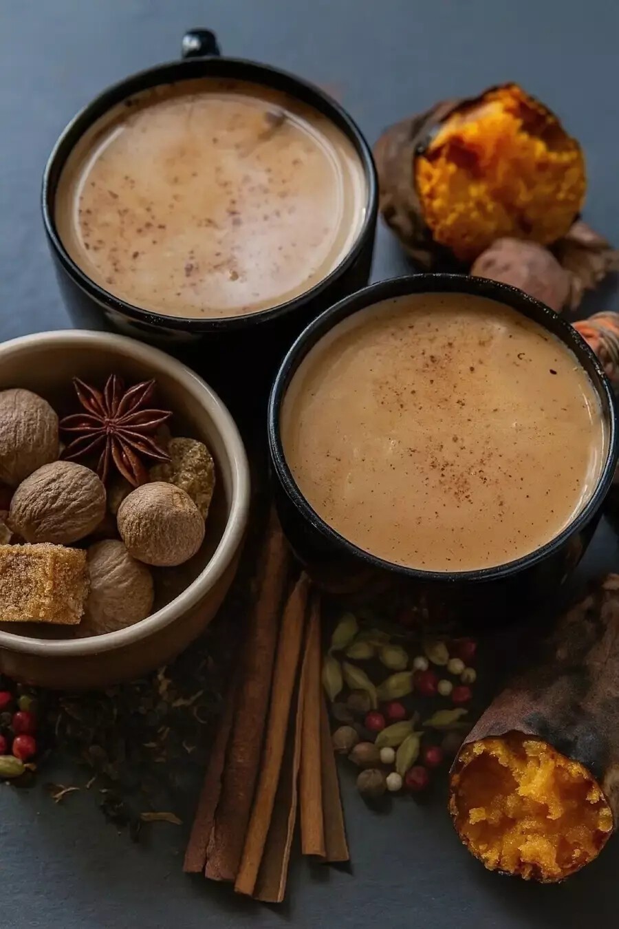 ホットスイートポテトミルクティー&飲むホットキャラメルポテトラテ