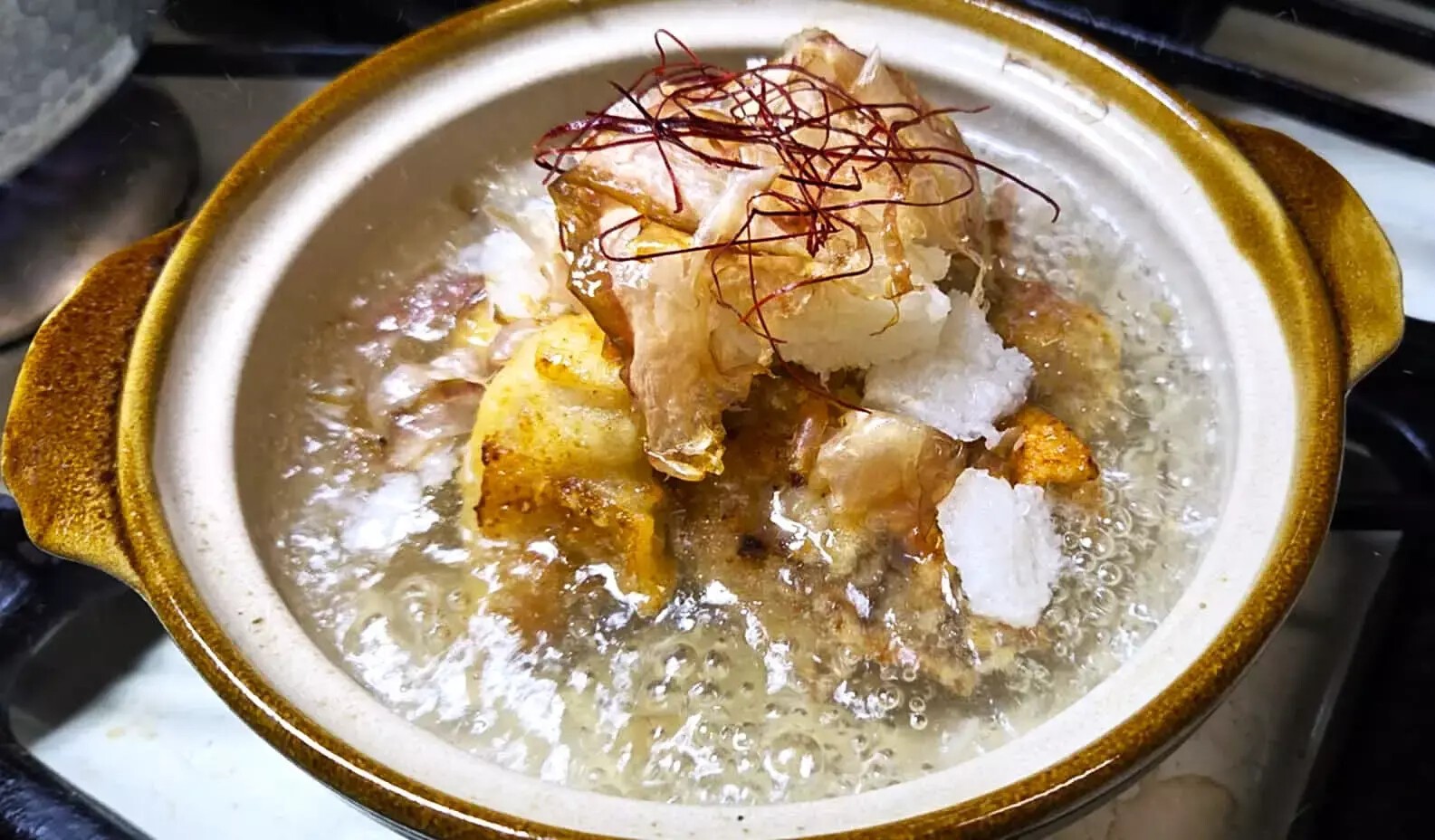 新居浜市ご当地グルメをPRする為、愛媛県創業支援を受け、年間を通じて全国イベントに精力的に出店を展開しております。塩からあげをメイン具材とし、イリコ出汁スープにポン酢と愛媛の「ぶひ丼」のタレを併せてを整え、大根おろし・カツオ節・糸唐辛子で彩る薬膳鍋です!