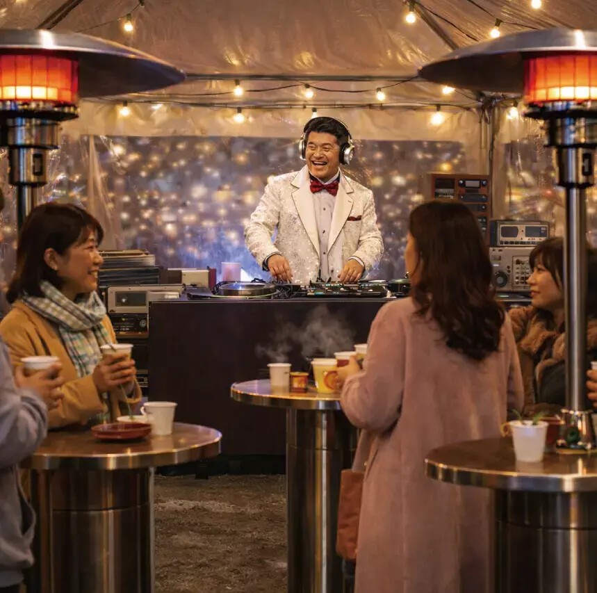 寒い季節に嬉しい!会場内に暖房の効いた "あったかテント" が設置され、テント内には DJ も登場!目の前で懐かしい昭和歌謡曲が流される。またお祭りならではのグルメやクラフトビールも!