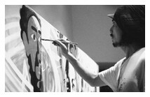ライブペインティング、壁画、Tシャツのブランドを中心に90年より活動を始める。”自由である事、自然の一部である事”をテーマに制作された生命観あふれる作品を個展を通して発表し続ける。