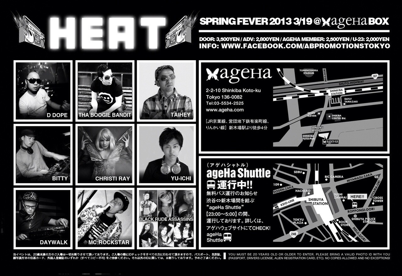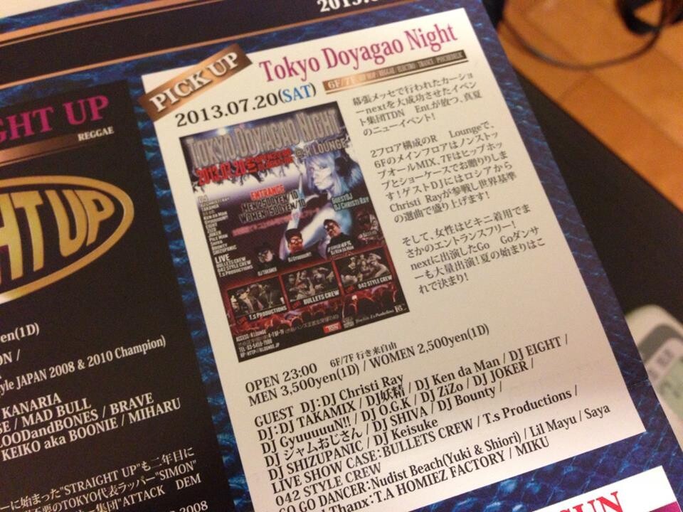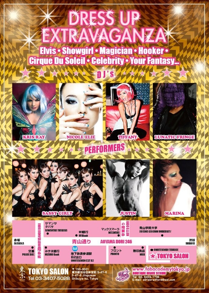 Now living in Tokyo, she is a performer at Luciano show , a regular dancer in Japanese music videos and TV commercials and has been a guest DJ at one year more that 160 events at venues including AGEHA ,WOMB with DJ KiD MASSIVE tour ,club LEG.A Club Asia, Warehouse, Le Baron, Velours, club Cove,Tokyo Salon -Las chikas , Bayside Yokohama, and many more.