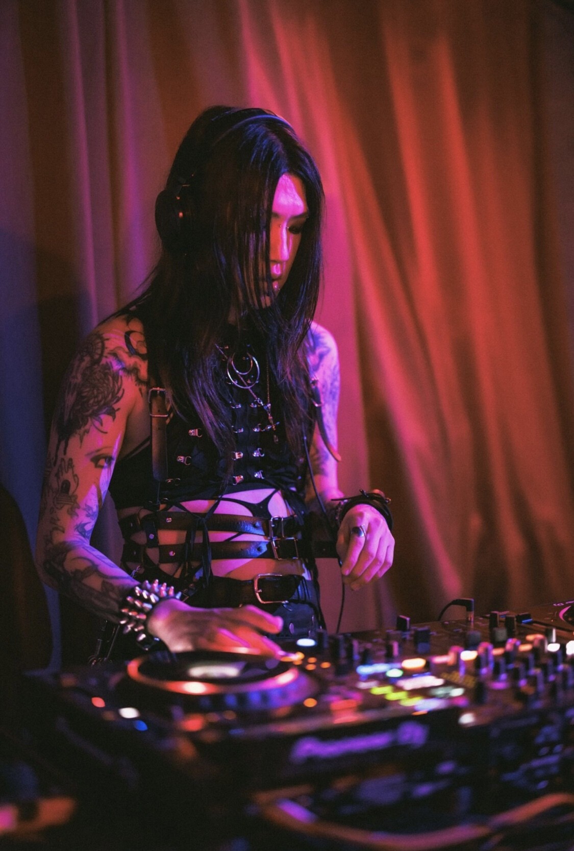 EBM/Industrial techno等を織り交ぜる、そのスタイルは重厚かつ妖艶。東京パーティシーンでセンス際立つ稀有な存在。