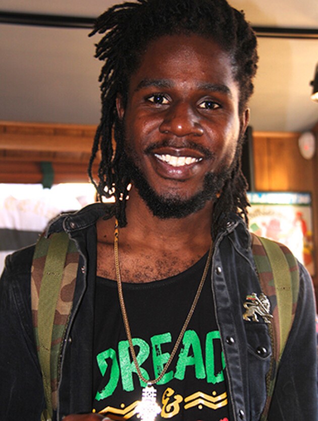 整理をすると、子どもの頃から音楽中心の生活をしていて、高校を卒業したかしていないかのタイミングで、本格的にレコーディングを開始。「いま、ヒットしている曲でだいぶ前に作った曲は多い」と言うから(彼の“だいぶ前”は、5年前だ)、17才か18才で、全世界のレゲエ・ファンを震撼させるような曲を作ったことになる。神童、とか、天才、とか、煽っちゃいけないと思いつつ、もうほかに言葉が見つからない。私は、去年は5回、今年に入って3回ステージを見ている。ジンク・フェンス・レデンプションの演奏を含めて、どんどん研ぎ澄まされ、新人とはとても言えないレヴェルに達している。その一方で、インタヴューの途中で「日が暮れる前にサッカーをやりたいんだけど」と、ごねる21才らしい面も。