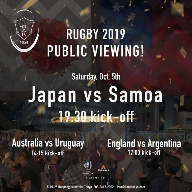 Not only for the travellers from all around the world, but for the office workers that love Rugby, come and enjoy RUBGY BAR TOKYO, Sports Bar opening during 2019/9/14 (Fri) to 2019/11/14 (Sat) at 1Oak Tokyo, 3F 5-10-25 Roppongi, Minato-ku, Tokyo