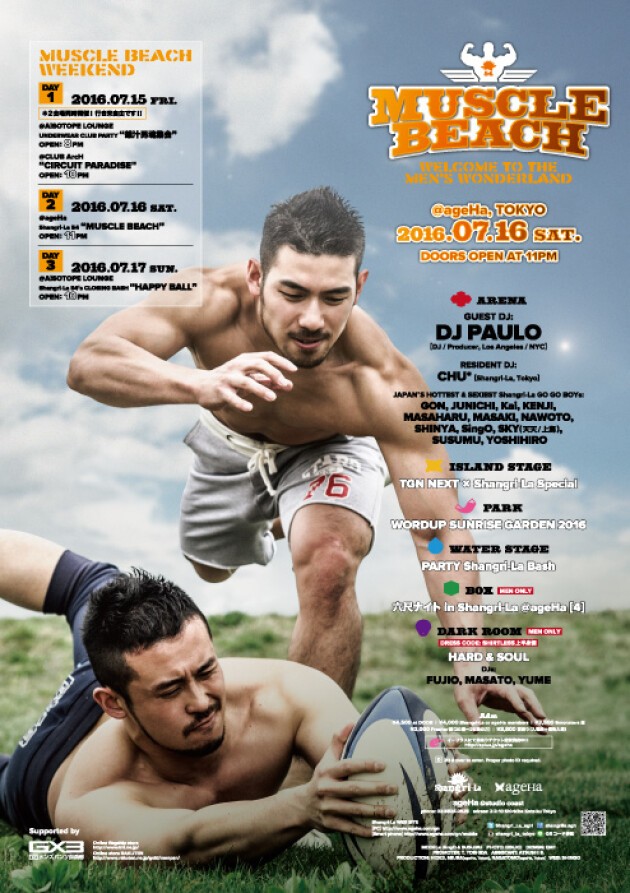 全アジアからパーティーピーポーが東京を目指し、年々HEAT UPするShangri-Laは、言わずと知れたこの ”MUSCLE BEACH”。