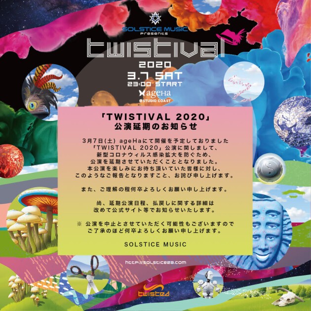 3月7日(土) ageHaにて開催を予定しておりました「TWISTIVAL 2020」公演に関しまして、