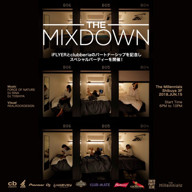 iFLYER と clubberia。この両社のパートナーシップを記念したスペシャルフリーパーティー『THE MIXDOWN』を、The Millenials Shibuya にて2018年6月15日に開催致します!