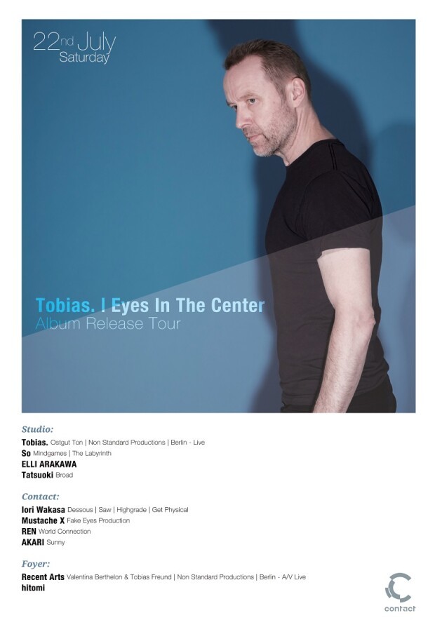 サウンドエンジニアの経験に裏打ちされた確かなライブパフォーマンスで第一線を走り続けるTobias.がContactに初登場! 移ろいの激しいダンスミュージックシーンにおいて、安定した人気を維持しながら活動するアーティストは数少ないが、毎年のように来日し、フロアを熱狂に導いてきたTobias.は、一時のブームに左右されない力強いテクノミュージックを提示できる存在だ。Ostgut Tonから今年発表したアルバム「Eyes In The Center」は、彼の代名詞でもある高解像度の音像と精巧なサウンドデザインを全面に押し出し、4つ打ちに限定されない多様なリズムによる実験性の強い意欲作となった。アルバムのリリースツアーとして実現した今回の来日では、現在進行形のTobias.を体験する絶好の機会となる。円熟の域に達しながら、進化することを止めない彼のライブパフォーマンスは、Contactのフロアにも新鮮な驚きと興奮をもたらしてくれるに違いない。