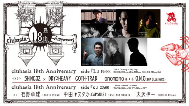 clubasiaが3月で18周年を迎えるパーティーに豪華出演者が発表された。