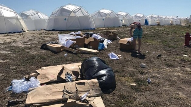 用意されていた寝床は、宿泊施設と呼ぶには程遠い簡易テント。ロッカーには鍵はなく、暗闇の中輸送コンテナから荷物を運び出し、食パン2枚チーズ2枚にサラダだけの食事と、事前の話とは程遠い散々な待遇で、当然のことながら主催者の Billy McFarland(ビリー・マクファーランド)と Ja Rule(ジャ・ルール)は民事訴訟へと追い込まれていく。