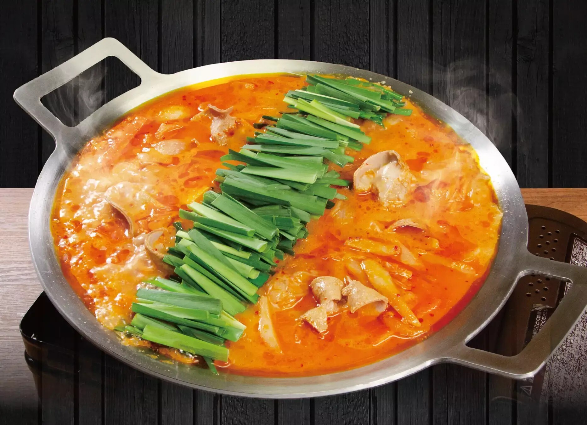 味の決め手は「自家製辛みそ」と「牛だし」で作る特製スープ!辛さは控えめで、ぷりっぷりの牛ホルモンの旨みを堪能できる人気のお鍋です。
