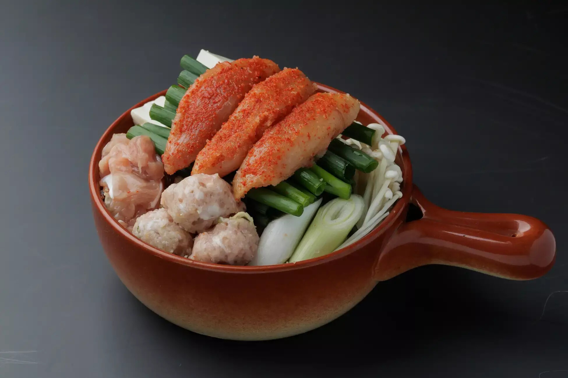 たっぷりの明太子をのせた明太子好きにはたまらない絶品鍋。じっくりとゆっくりと煮込み取り出した鶏の旨みとお野菜たっぷりのお出汁に明太子が載った至福の鍋に仕上げます。