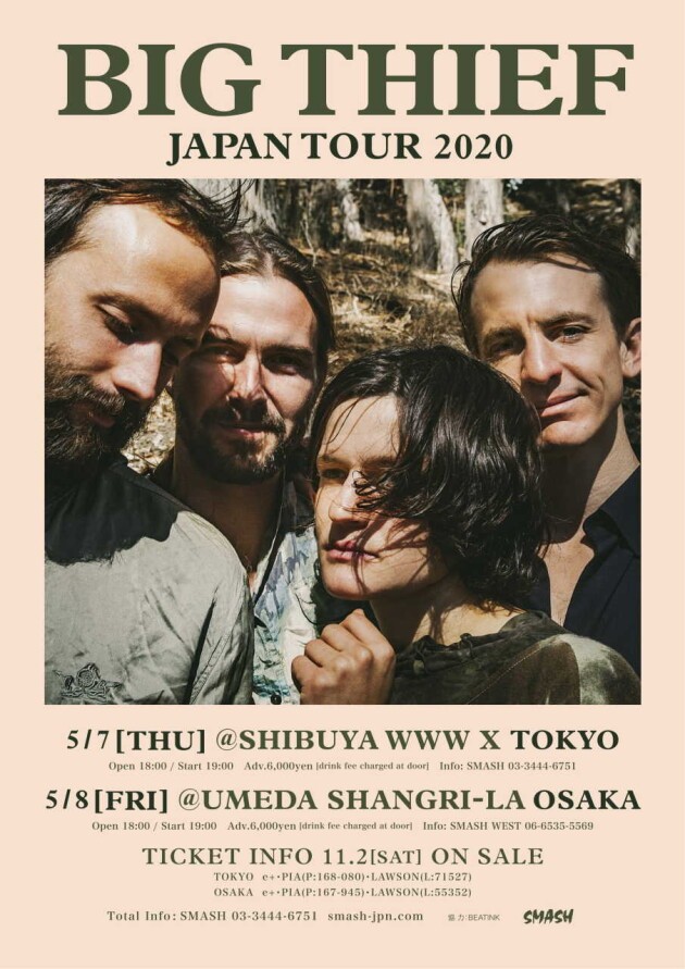 2016年にデビューアルバム『Masterpiece』をリリースし、瞬く間にインディーフォーク界で頭角を現したビッグ・シーフ。今年5月に英国が誇る名門インディーレーベル〈4AD〉移籍後初のアルバムリリースとなる『U.F.O.F.』をリリース。「疑う余地のない最高傑作」と謳ったピッチフォークをはじめ、多くのメディアが大絶賛した。約5ヶ月というタームで”天”と“地”というテーマに分かれた2部作の新作『Two Hands』をリリース。前回の作品とは正反対の、地球、泥、そしてその下に埋まる骨となるアルバムを引っさげ、待望の初来日が決定!