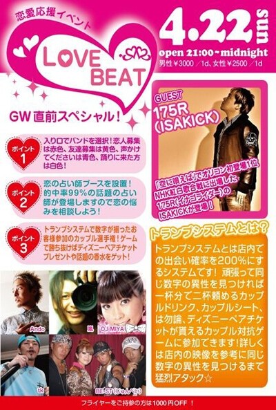 4月22日は1000人規模の大人気イベントLOVE BEAT