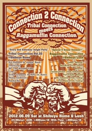 毎月第2土曜日の渋谷を熱くしているジャングル・パーティー【Tribal Connection】と一夜限りのスペシャルダンス【Raggamuffin Connection】が2012年6月9日土曜に渋谷HOME, LUSHの2店舗(お隣りどうしの店舗)で同時開催!!