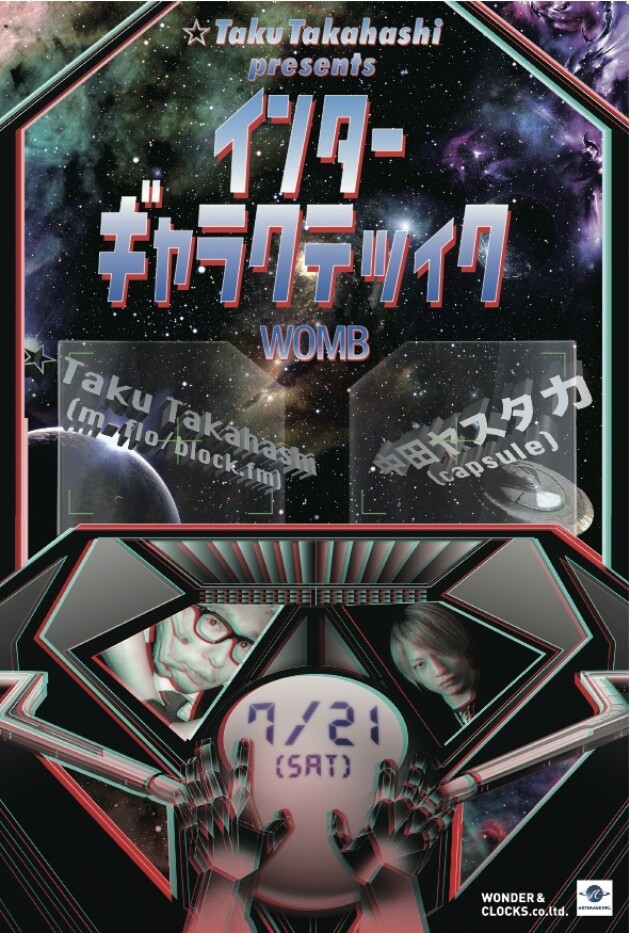 m-floの活動と並行し、数々のアーティストの楽曲提供やリミックスなどを手掛け、DJとしても日本全国のクラウドを煽動してきた☆Taku Takahashiが、ついにWOMBでニュー・パーティを始動する。『INTERGALACTIC』と銘打たれたこのイベントは、その無限なる音楽性をすべて解放したエキサイティングな空間。エレクトロやドラムンベース、ダブステップやアシッド・ハウスなどを飲み込み、エレクトロニック・ミュージックの最前線を突き進む。そんな『INTERGALACTIC』の記念すべき第一弾のゲストは中田ヤスタカ(capsule)。capsule本体での活躍の他、実力派プロデューサーとしても知られる彼が、☆Taku Takahashi同様、クロスオーバー感覚にあふれたサウンドを放つ。退屈なミュージック・ライフに刺激を注入する『INTERGALACTIC』。その全貌がWOMBを舞台に、間もなく解き明かされる。