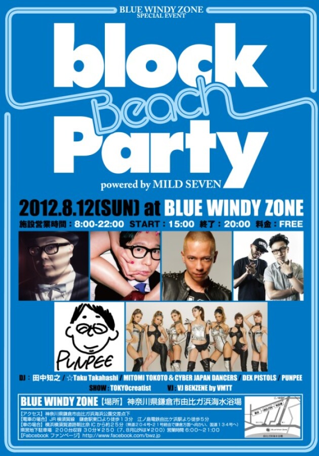 8月12日に行われる「BLUE WINDY ZONE SPECIAL EVENT block beach party」@由比ヶ浜のタイムテーブルはこちら。