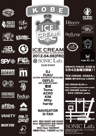 神戸版「ICE CREAM」が4月から「毎月第1金曜日」に三ノ宮の「SONIC Lab.」 で開催!