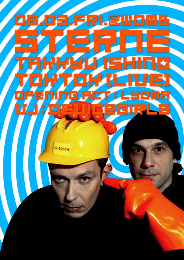 真夏に開催される石野卓球レジデント STERNE の今回のゲストは、WIRE ファンにもお馴染み TOKTOK が LIVE で登場。ファビアンとナークによる TOKTOK は、'94年にスタートしたベルリンのテクノ・ユニット。2000年に結成した、歌姫 Soffy O との"Toktok vs. Soffy O"で最初のトラック、「Missy Queen Gonna Die」はフロアの大ヒットチューンとなり、大手レコード会社から契約オファーが来るほど話題となり、その直後に発表したシングル、「Day Of Mine」とそのアルバムも世界中の注目を集め、ドイツのエレクトロニックミュージック部門で賞を取るという快挙を遂げ、過密なツアースケジュールで世界中を回るまでとなり、シーンでの人気を不動のものとした。この秋、待望の最新アルバムの発表の噂もあり、新曲を交えたエクスクルーシブな LIVE は、この夏一番の話題となるであろう。