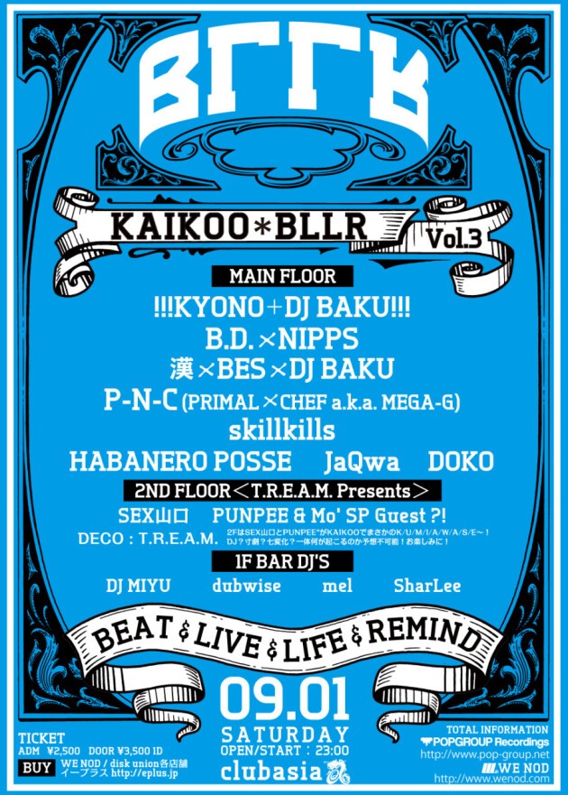 様々なスタイルが交差し、きっと新たな音楽と出会えるKAIKOO*BLLR [BEAT, LIVE, LIFE, REMIND]遂にvol.3!