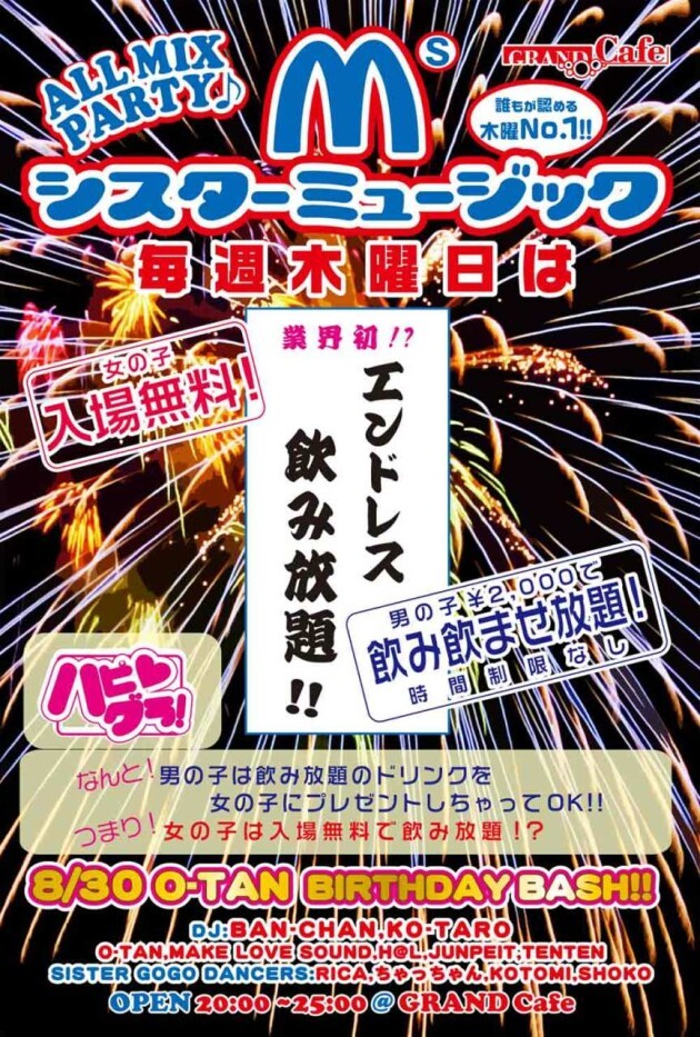 女の子を中心にオシャレにガッツリ朝まで盛り上がる「女の子が楽しめ元気になる♪」イベントです!!