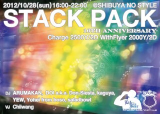 初期メンバーの三人に、Don-Siesta、yohei from boso、Yew、Chiiwangという心強いメンバーも加わり、拠点をNo Styleに移してからは(主に酒関連で)様々な記録を塗り替えたSTACK PACKが、皆様の愛と飲酒欲に支えられとうとう今回で10周年を迎えます!