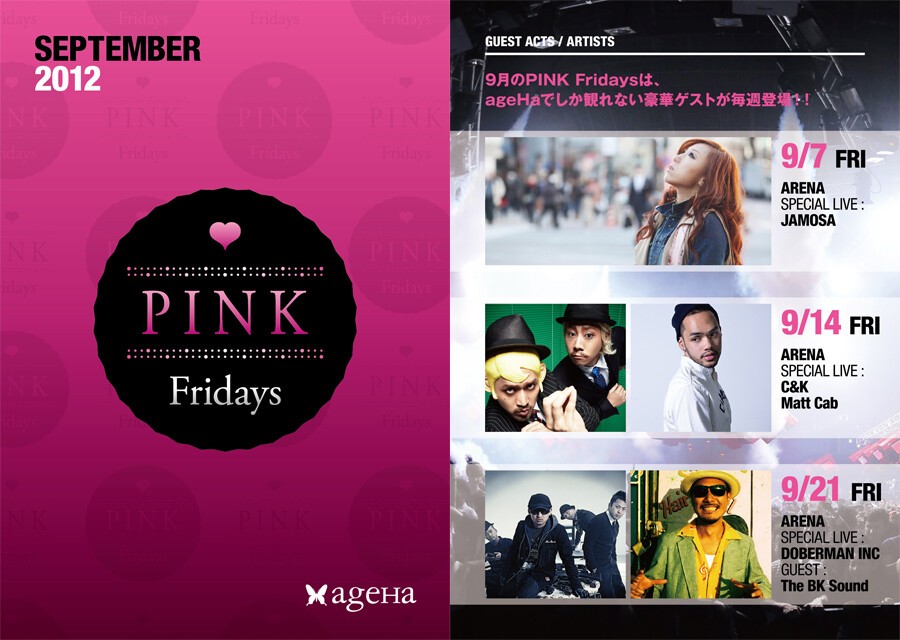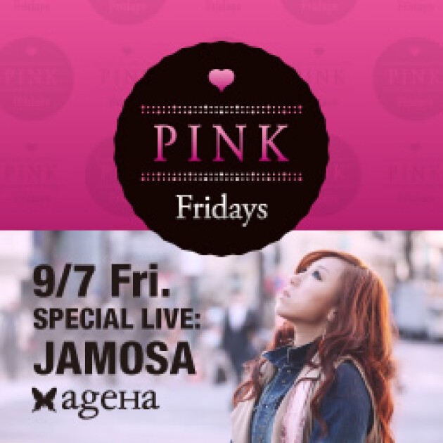 最強のレディースナイト、PINK Fridays!9月は3週連続開催!第一週目は、性別や世代、ジャンルを超えて、今もっとも共感を呼んでいるアーティスト、JAMOSAがスペシャルライブを披露!もちろん外国人ダンサーのGO GO DANCEショー、ポールダンサーの華麗な舞も存分に楽しめちゃいます。レディース・エリアでは、今メディアで話題のドラァグ・クイーン(女装家)のおもてなし付き。