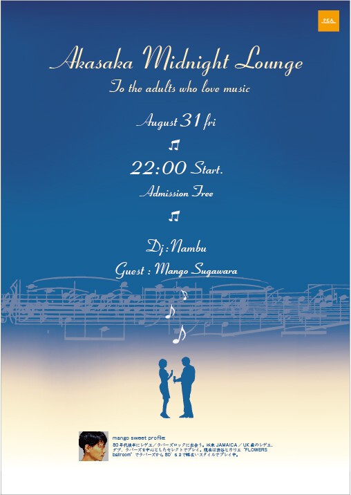 レジデントDJ NAMBUとゲストDJ Mango Sugawaraのセクシーかつグルーヴィーな選曲。