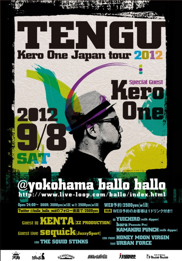 前回の10周年にOhmega watts,Freddie Joachimの日本公演とのコラボで大成功だったTENGUが、なんと今回はKERO ONEの日本公演とのコラボレーションとして開催されます! そこにあのJazzySportを代表するトークボックスプレーヤーのSequikのゲストライブや、あのZZ ProよりDJ KENTAをゲストにむかえ開催されます☆ そしておなじみのMilk Dipper DJ'sはもちろんのこと、ライブペイントやフード、ショップブースなど内容盛りだくさんです!http://www.youtube.com/watch?v=jcHYbrT0YjI&;feature=relmfu
