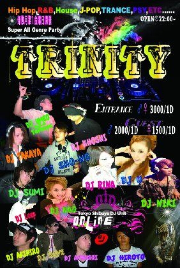 TRINTYとは『三位一体』を表し、オーディエンス、DJ、音の三つ要素を三位一体として表したEventです。