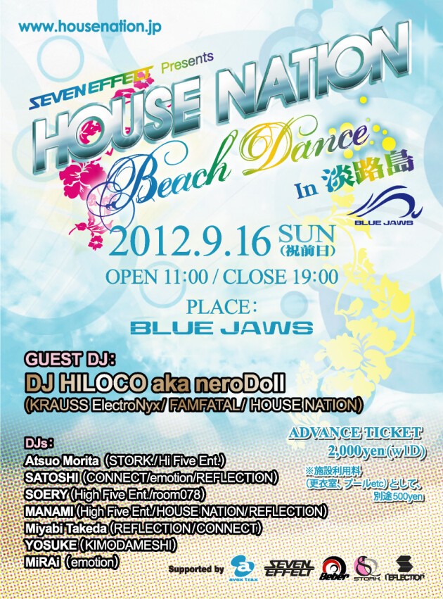 大人気ビーチ・イベント"HOUSE NATION Beach Dance"が、700 名の収容を誇る淡路島のビーチリゾート“BLUE JAWS”にて開催決定!
