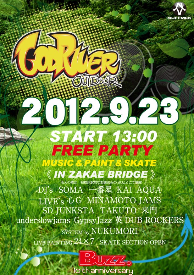 OUT DOOR FREE PARTY 雨天の場合 相模原駅前 BUZZにて開催!!