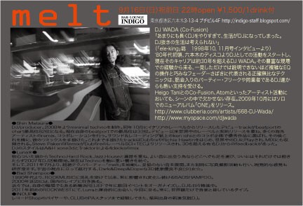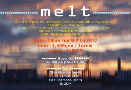 そして、2011年7月より、超絶テクノパーティー「melt」を始動し、妥協のない音を展開。