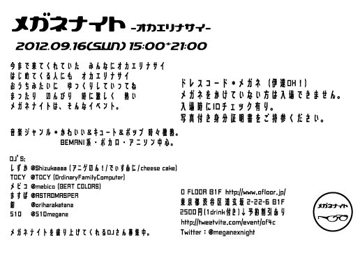 ハッシュタグ:#メガネナイト #megane0916