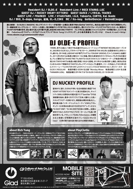 東西のリアルHIP HOPを織り交ぜ、初心者から玄人まで誰でも楽しめるONE AND ONLY PARTY!!