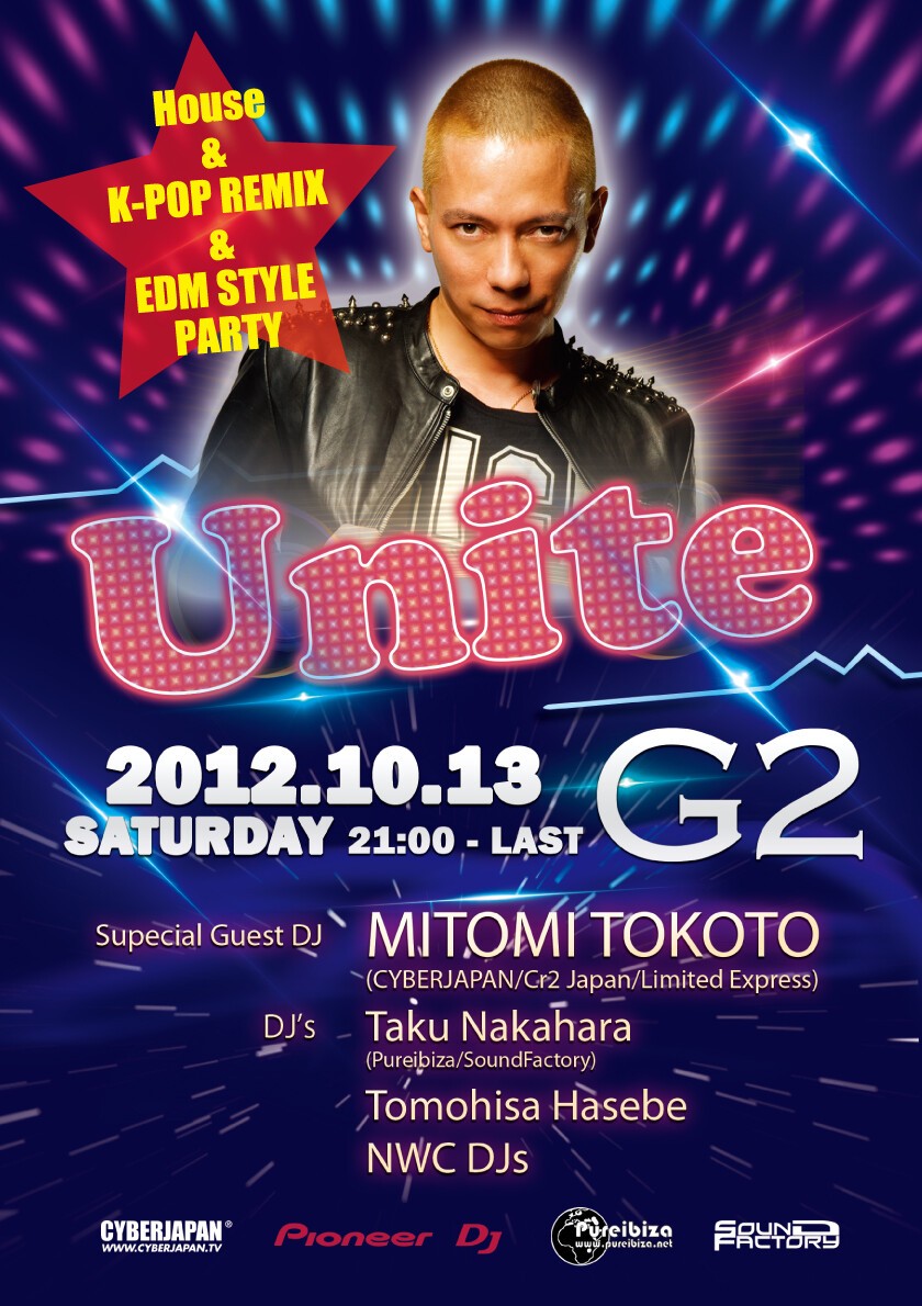 OWL OSAKAのサンセットタイムで好評を得ていたパーティーUniteを今回はG2 OSAKAのナイトタイムで開催!