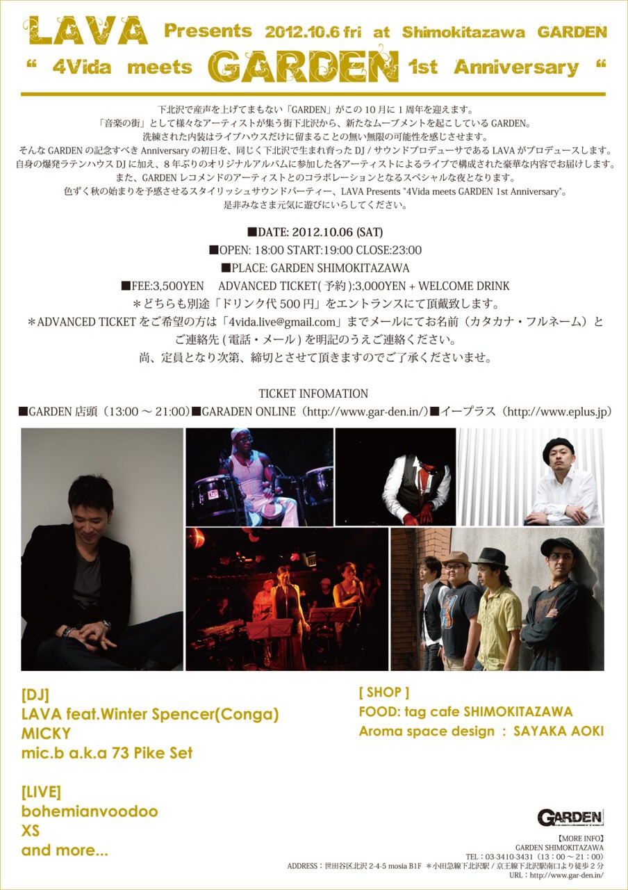 そんなGARDENの記念すべきAnniversaryの初日を、同じく下北沢で生まれ育ったDJ / サウンドプロデューサであるLAVAがプロデュースします。